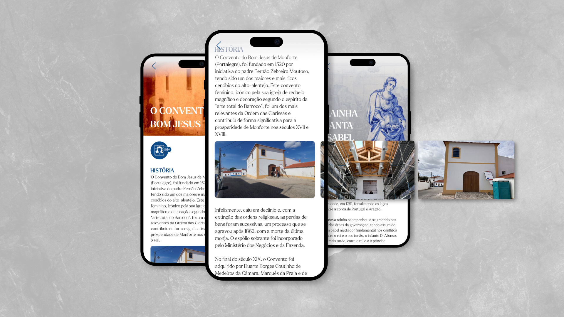 Um projeto que alia o poder da tecnologia para contar histórias à magia da azulejaria ganhar vida. Uma aposta forte do Município de Monforte na realidade aumentada como veículo de imersão, uma viagem no tempo rumo à preservação e valorização do passado e do património nacional. Aqui a missão aqui é restaurar a história, fundir tecnologia com cultura, aprendizagem e inovação. Através desta aplicação, a história da Rainha Santa Isabel ganha vida de forma imersiva ao permitir aos seus visitantes experienciar momentos historicamente importantes do passado, narrados pela atriz Diana Chaves. Pode ser fácil e divertido aprender e descobrir Monforte Sacro!